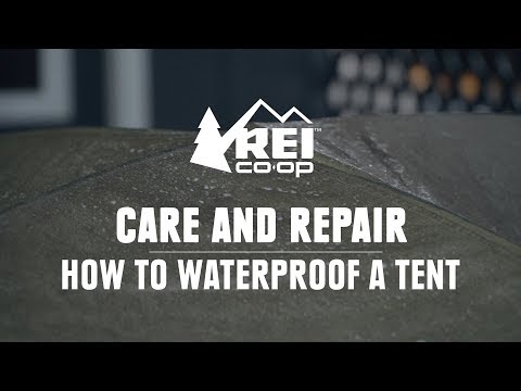- Hold the bottle a few inches from the tent’s fabric and spray to apply in even strokes. You’ll want to overlap each stroke by about an inch to maximize coverage of the waterproofer.